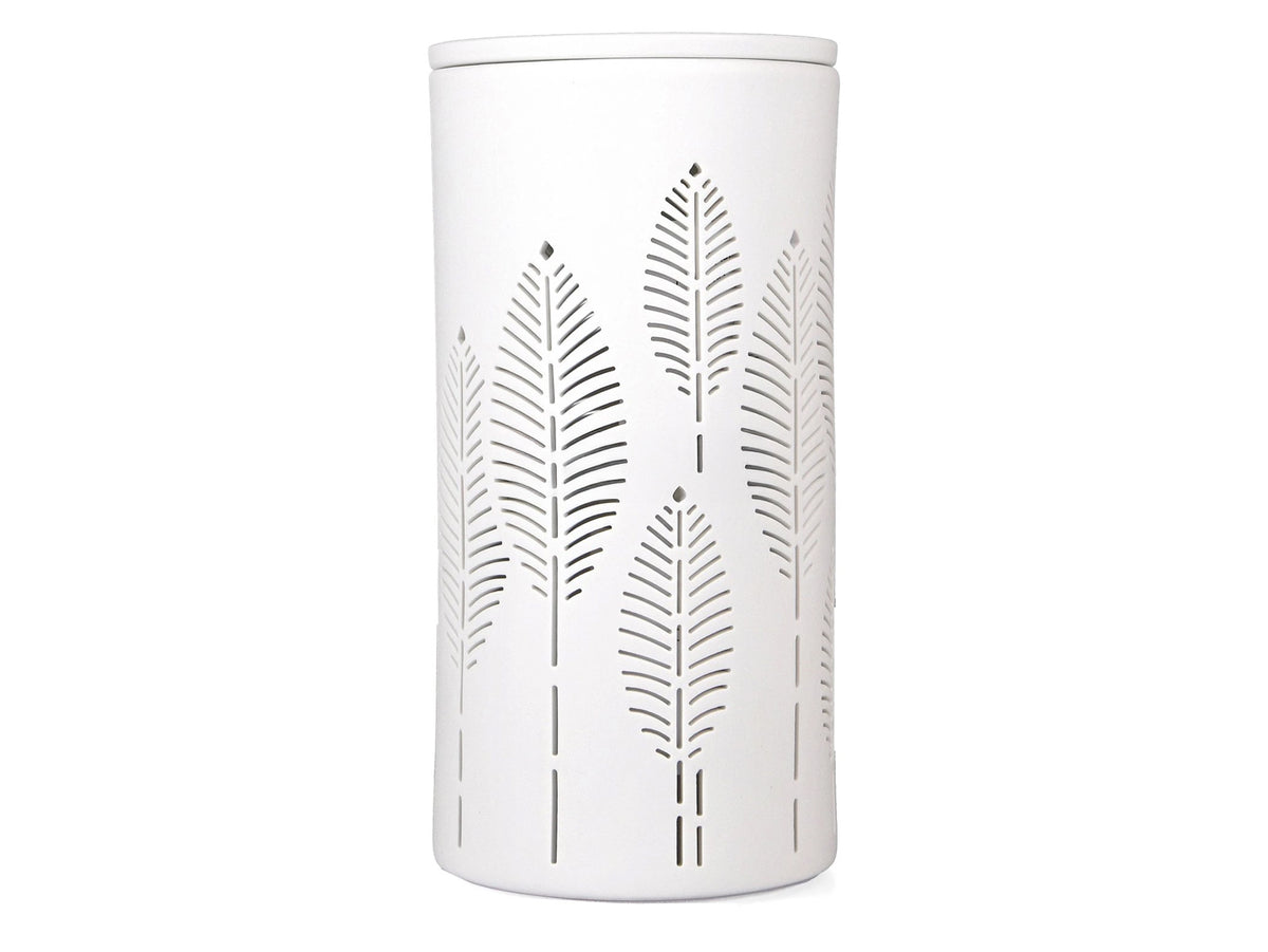Dall'originale forma cilindrica, Laurus è un diffusore in ceramica lavorata a mano. Eleganti foglie di alloro regalano giochi di luce per un esperienza aromaterapica completa.