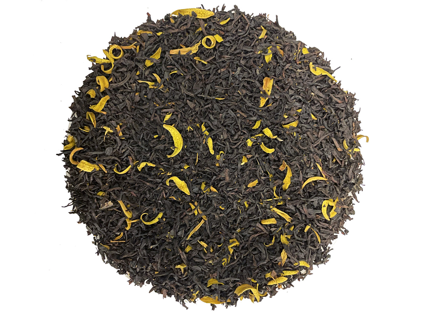 Con: tè nero, scorza d’arancio, olio essenziale d’arancio.