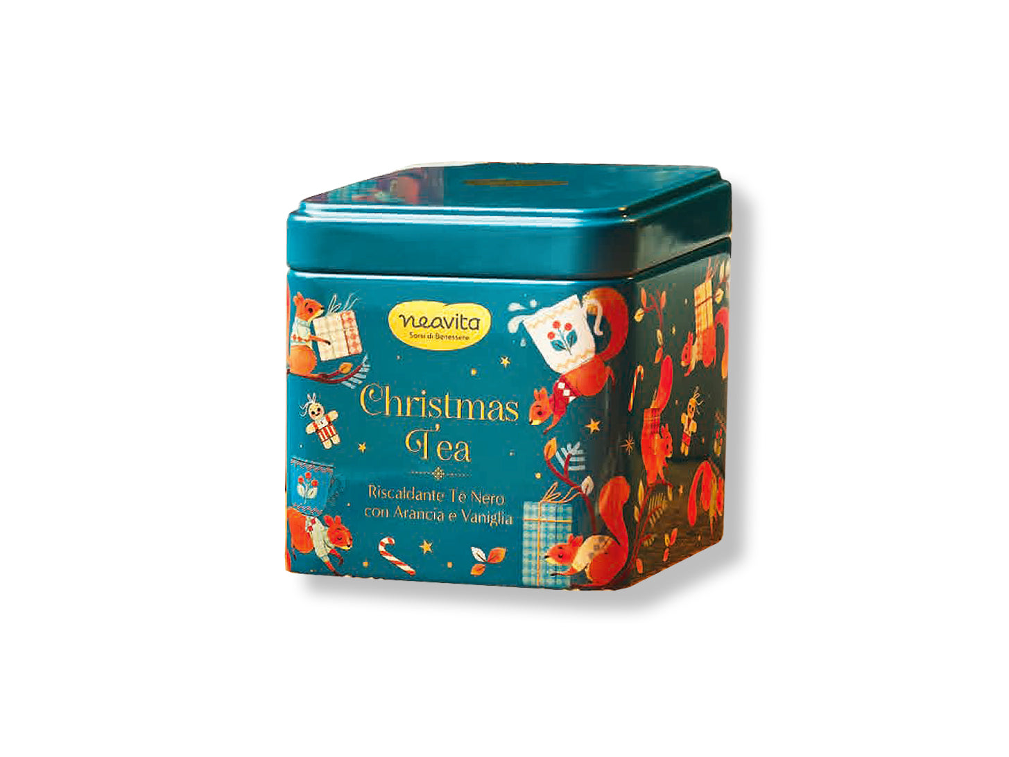 Un grazioso "mini" barattolo a tema natalizio contenente 5 piramidi filtro di "Christmas Tea Nero"... e che dir si voglia, venne Natale solamente a sentire il suo profumo.