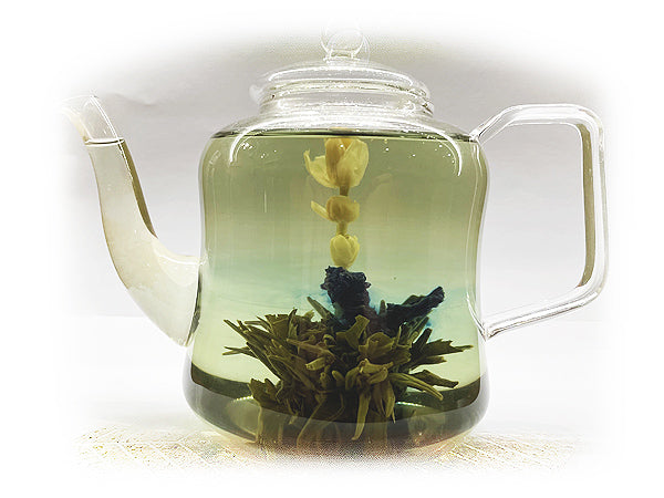 1 fiore per 450 ml di acqua, ovviamente in teiera trasparente