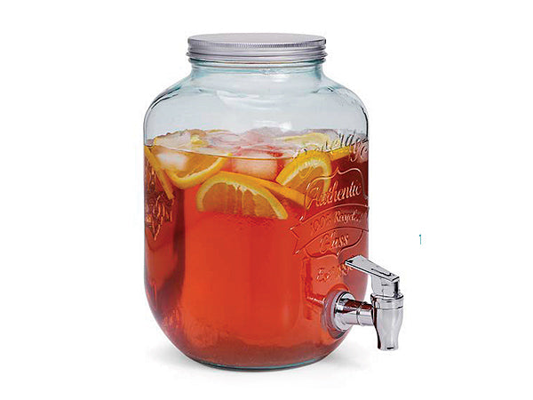 Questo boccione in vetro permette di contenere fino a 4 litri di infuso freddo; dotato di un pratico rubinetto permette di spillare facilmente la bevanda direttamente nel bicchiere.