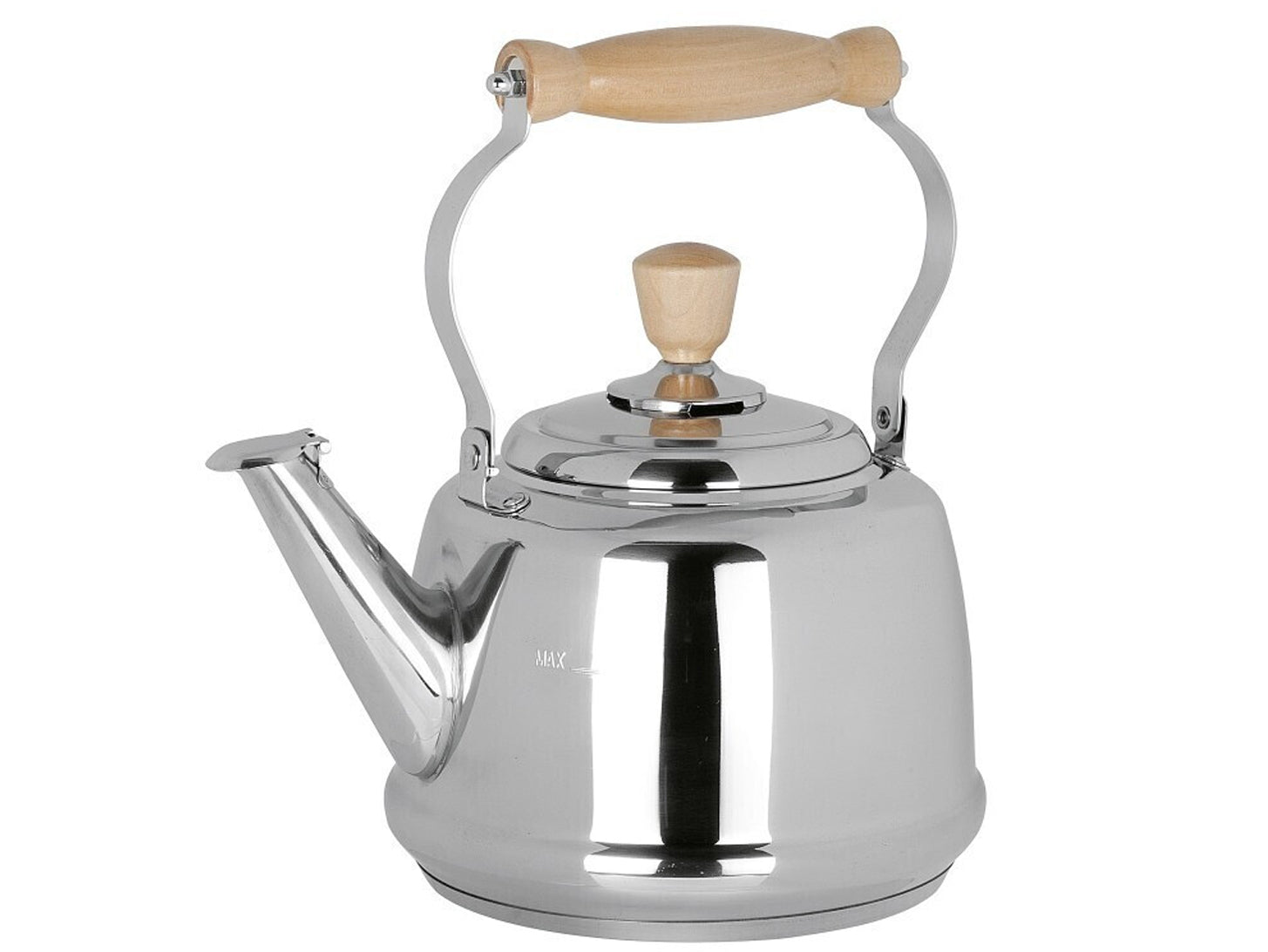 Realizzato in stile classico, questo bollitore è in acciaio inossidabile lucidato. Il design leggermente più sottile e le forme curve rendono il bollitore molto elegante. Il comodo manico in legno è assicurato saldamente sul bollitore per permettere un impugnatura comoda e sicura. Il coperchio si apre senza fatica e si chiude perfettamente. La base è in acciaio multistrato incapsulata per condurre il calore nel migliore dei modi.
