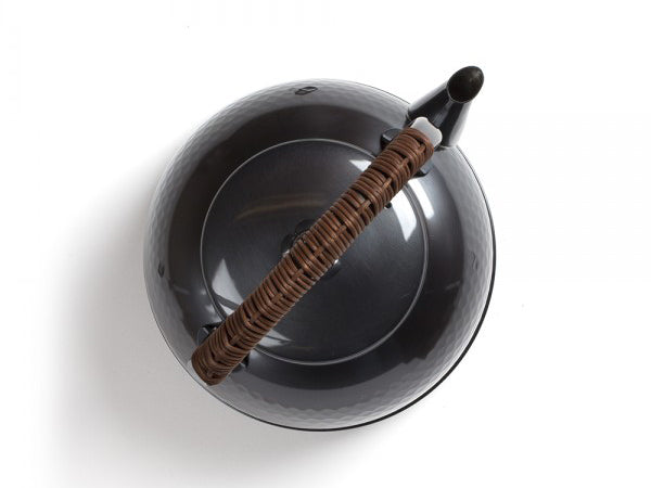 Completamente di rame è stagnato internamente come da antica tradizione; la bugnatura esterna è realizzata manualmente con una precisione impeccabile, il manico è invece avvolto da una fodera in rattan per poterlo maneggiare anche quando raggiunge elevate temperature.