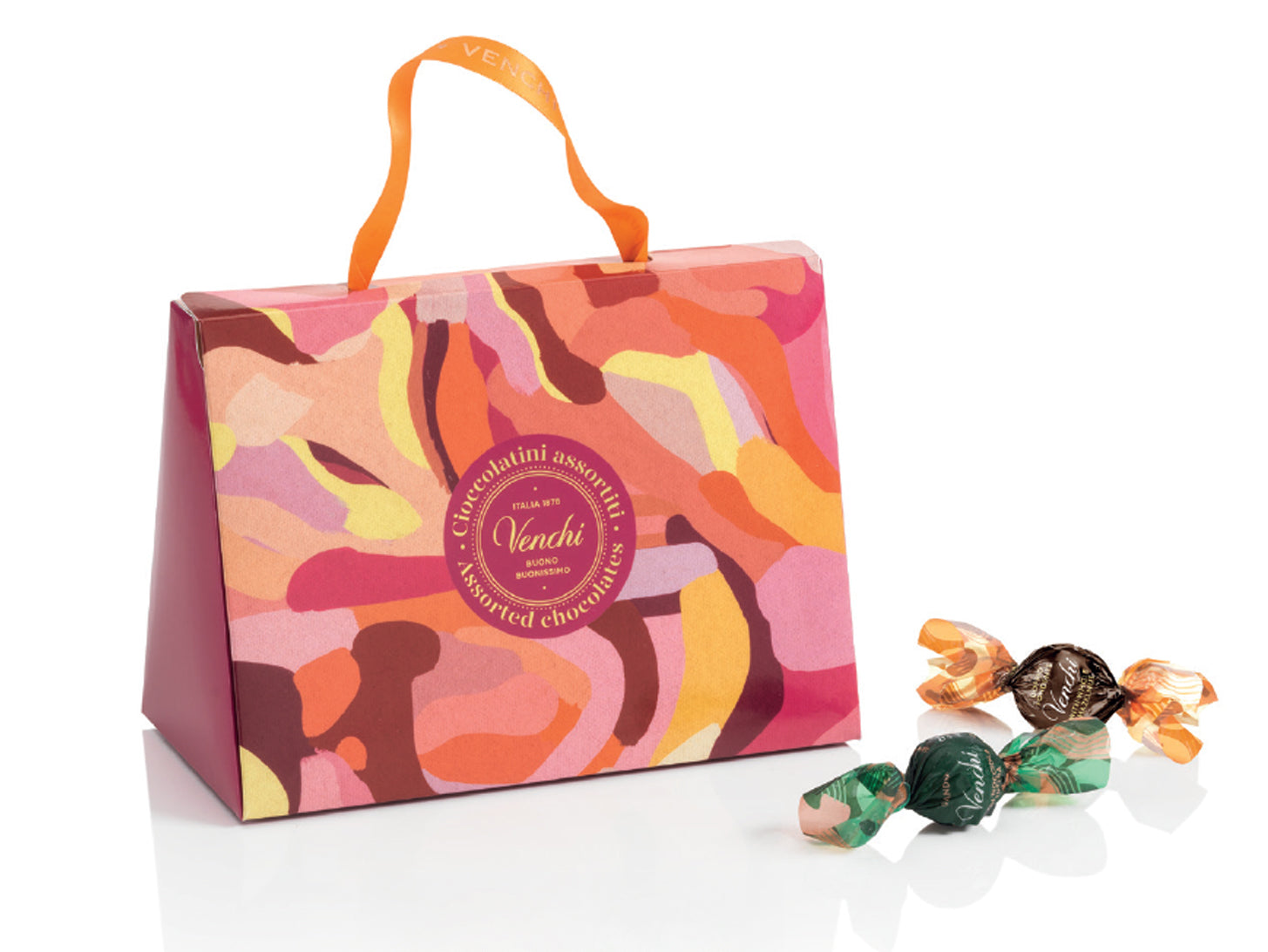 MINIBAG con assortimento di cioccolatini "perle" assortite in busta salva freschezza.