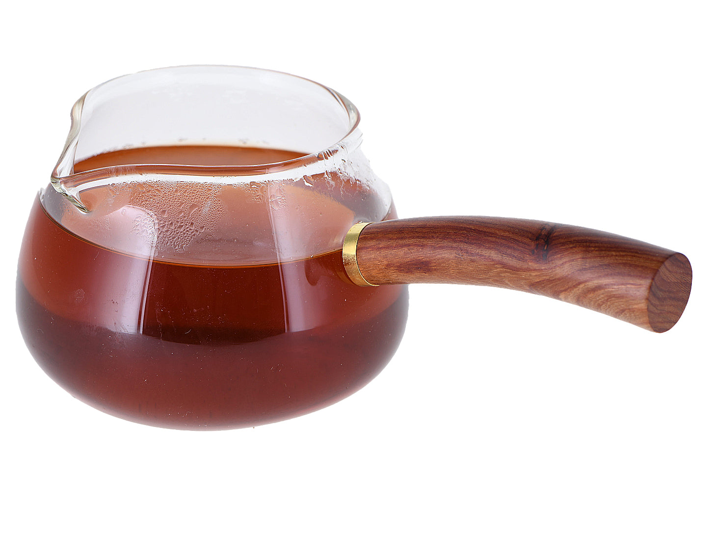 Caraffa in vetro per cerimonia cinese gong-fu-cha, il recipiente, dotato di comodo e grazioso manico in legno è resistente alle alte temperature.