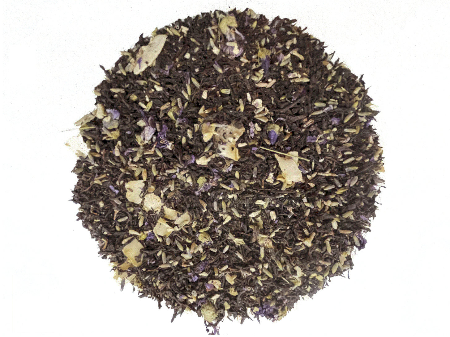 Con: tè nero, lavanda, cocco, fiori di malva.