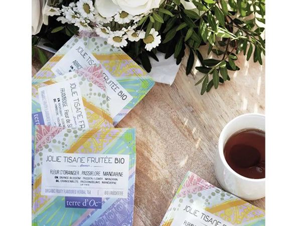 TERRE D'OC: in tutto il mondo, le donne coltivano piante di tè e raccolgono manualmente i germogli primaverili secondo tradizioni ancestrali, altre viaggiano ai piedi delle montagne per scoprire nuovi raccolti nei migliori giardini biologici o piantagioni leggendarie. In questo periodo c'è chi immagina e compone sapori delicati e raffinati o crea ricette dal carattere unico. Altri disegnano o riempiono graziose scatole di tè colorati. Altri infine assaggiano i raccolti e controllano la qualità delle foglie e degli aromi! Da quasi 30 anni, attraverso la volontà di un team di donne, Terre d'Oc lavora nel rispetto del pianeta e dei suoi abitanti e si impegna profondamente per il vero commercio equo e solidale, il meglio del biologico e un mondo rispettoso. terra di Oc, nata dal talento delle donne per un po' più di umanità nella vita di tutti i giorni!
