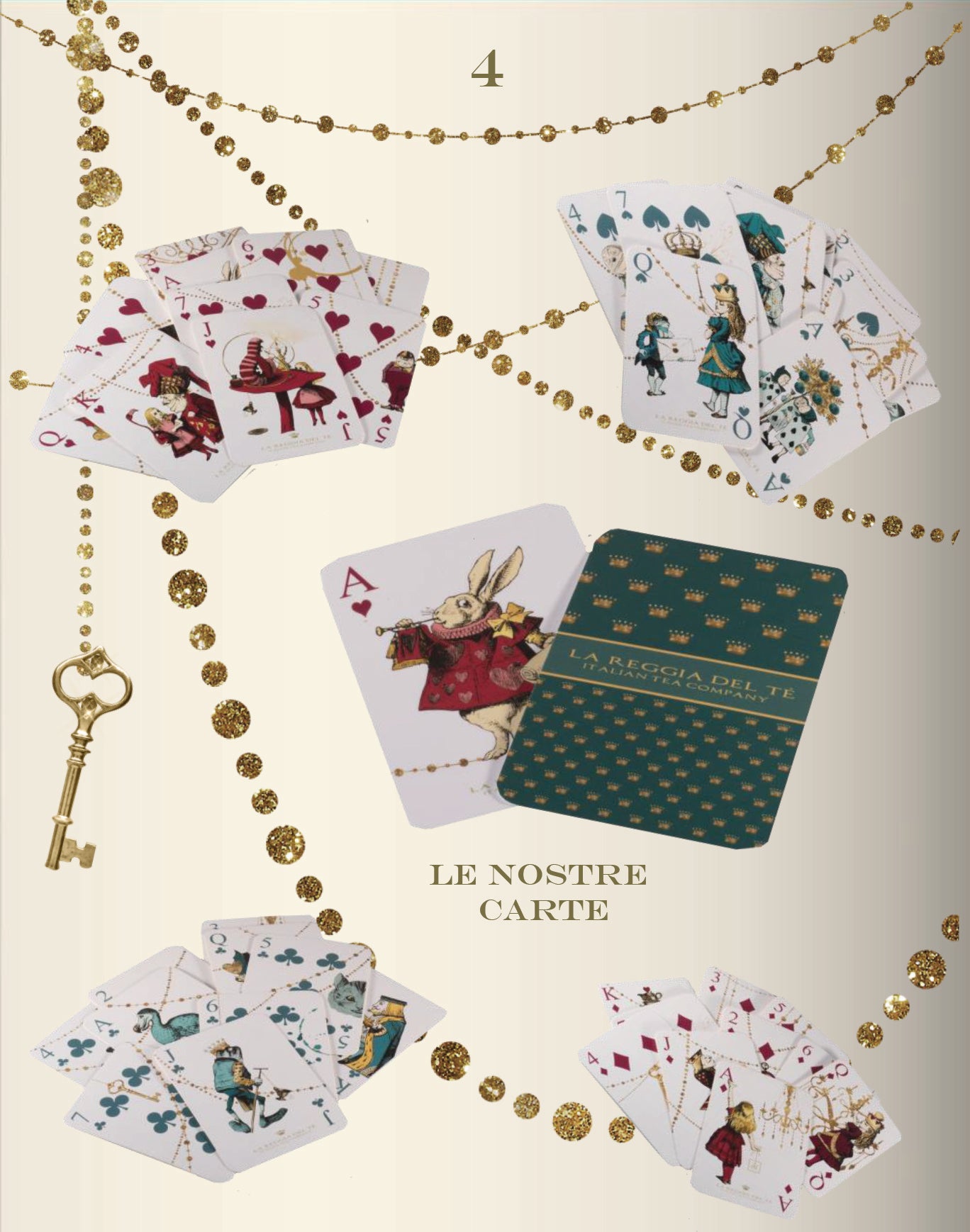 Originale ed alternativo cofanetto a tema "Alice nel Paese delle Meraviglie" con un gioco di carte e tè in filtri; la confezione contiene
