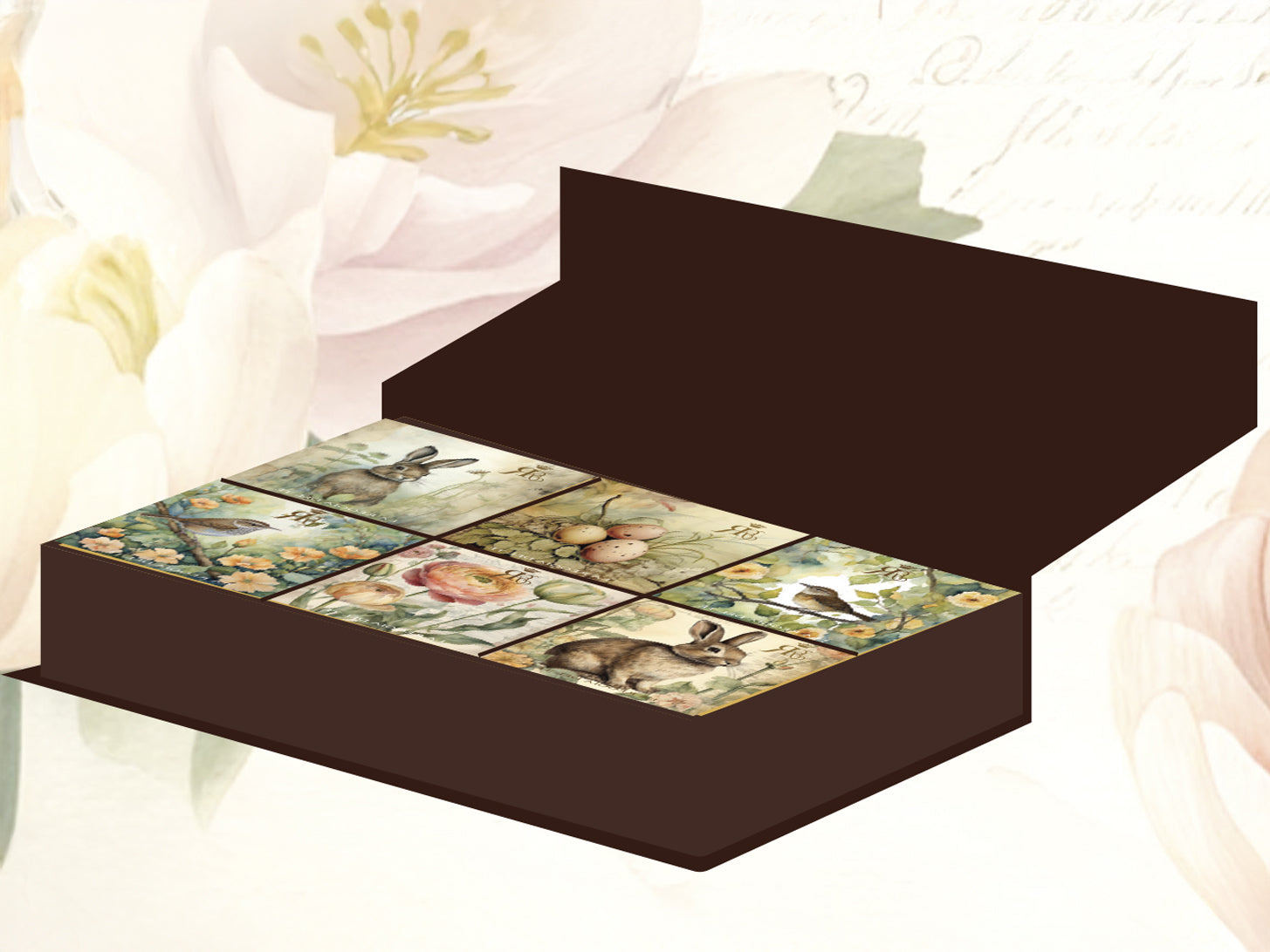 Astuccio porta bustine in cartoncino rigido rivestito a mano con chiusura a calamita,