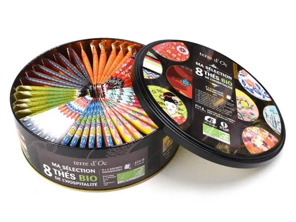 Delizia i tuoi cari con i tè dell'ospitalità contenuti in questo stupendo cofanetto firmato Terre d'Oc. Un viaggio sensoriale e gustativo da potersi concedere in qualunque momento della giornata