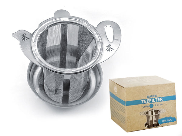 Questo classico colino filtro da tazza in acciaio è dotato di piattino salvagoccia. Può essere utilizzato in tutte le tazze con un "bocca" massima di 9 cm.