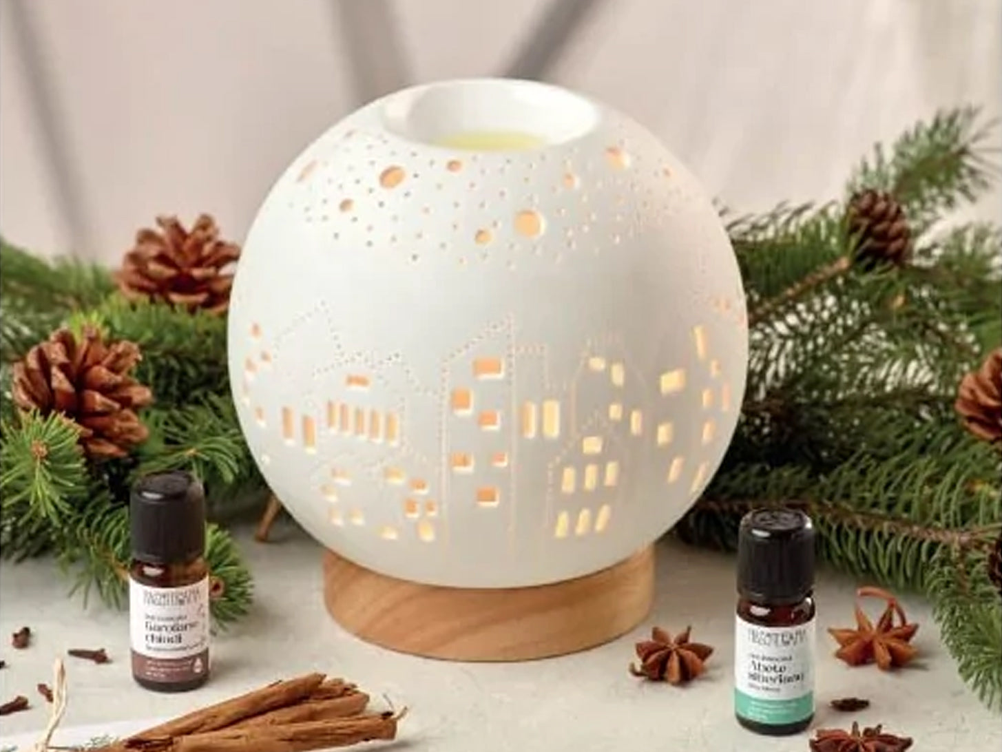 Come in una boule de neige Fiocco di Neve, grazie alla sapiente lavorazione, mette in scena un paesaggio innevato capace di creare un’atmosfera accogliente. La luce calda, unita ai profumi degli Oli Essenziali e delle essenze,