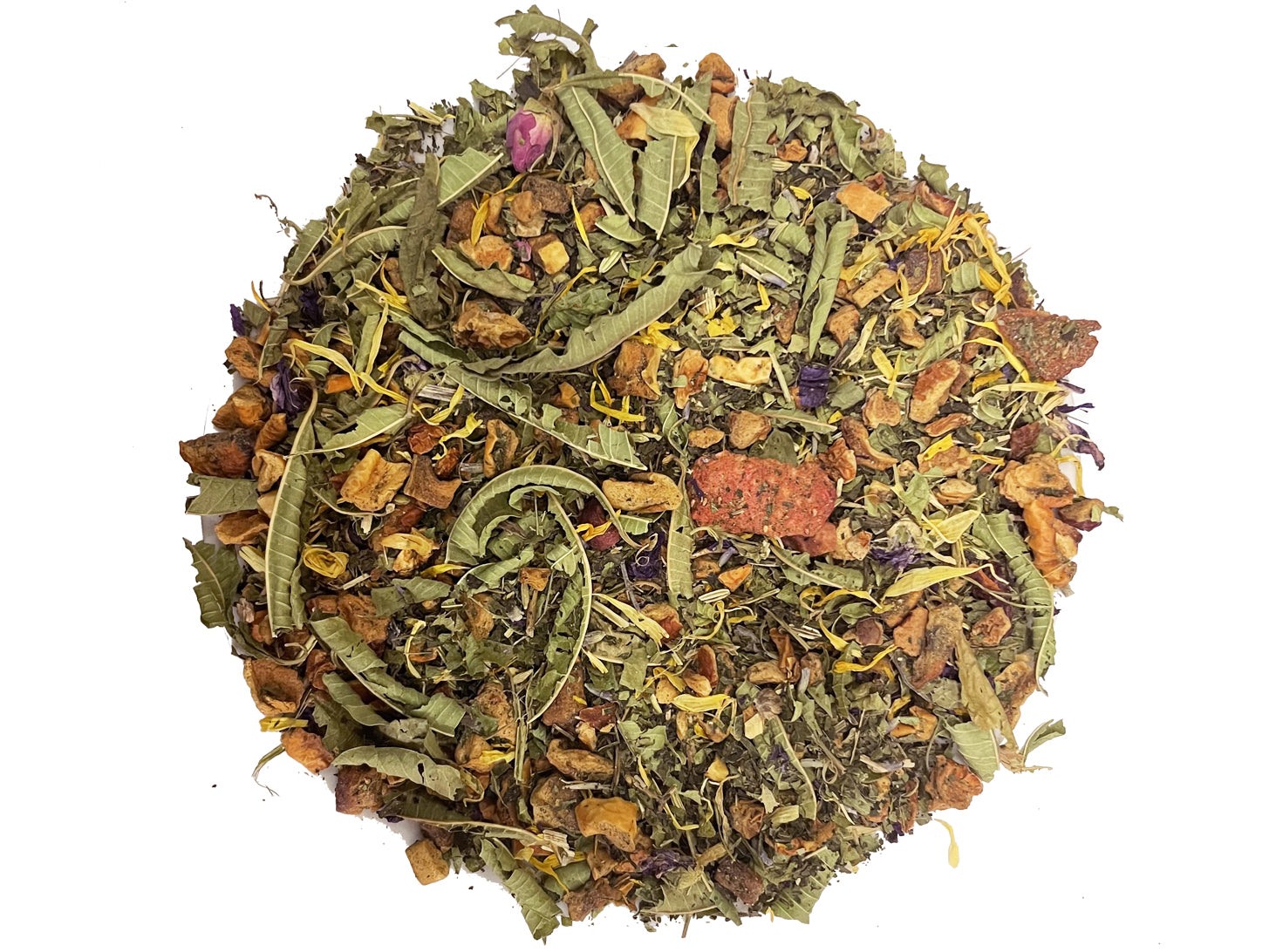 Con: lavanda, violetta, basilico, ortica, verbena, mela, finocchio, timo, rosmarino, fragola, foglie di vite, finocchio, petali di girasole, boccioli di rosa. Con aromi naturali