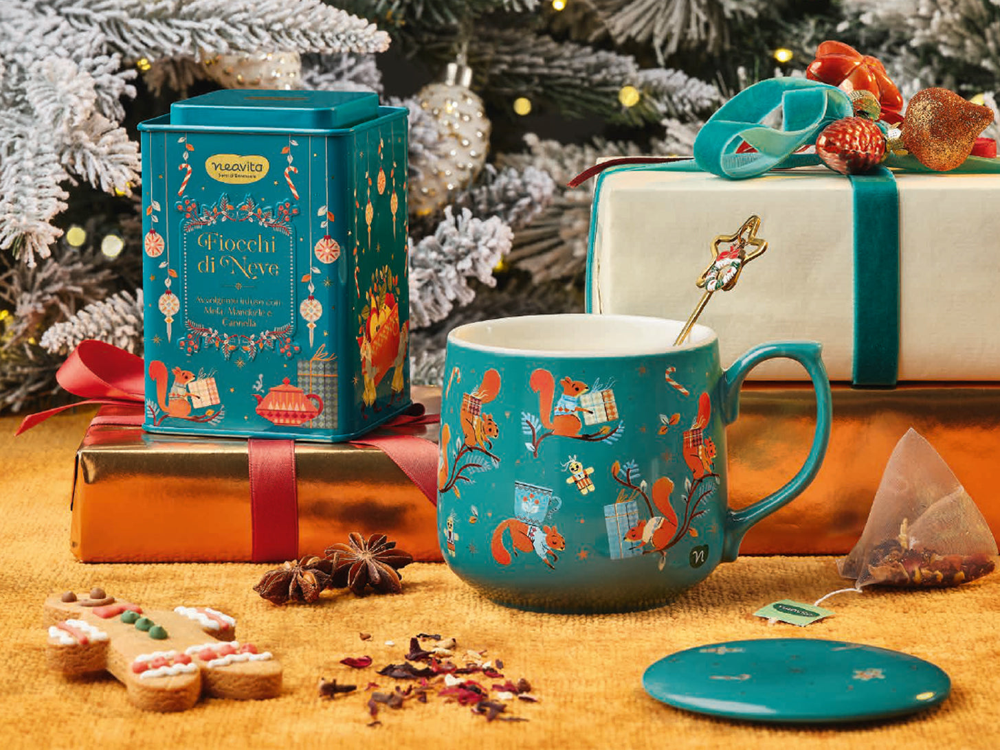 Graziosa tisaniera natalizia con coperchio in porcellana, dotata di un filtro in acciaio inox, contiene circa 400 ml di tisana ed è venduta assieme alla sua graziosa scatola coordinata.