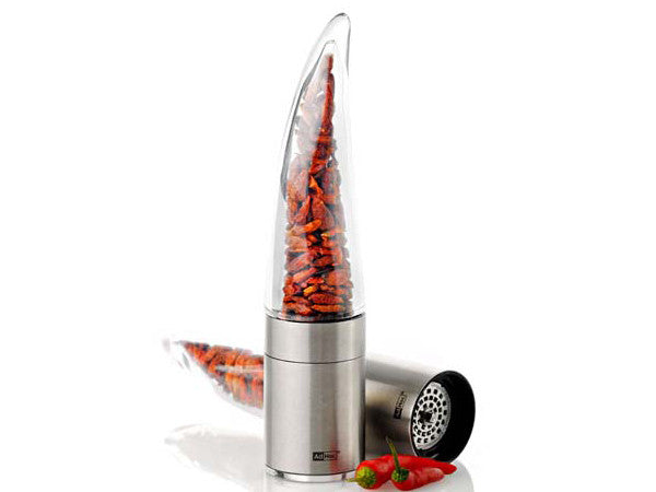 Dalla forma particolare e stravagante è prodotto con un originale unità di taglio che roteando permette triturare spezie differenti dal pepe o dal sale. Un macinino capiente utilissimo per spolverare spezie al momento sulle nostre pietanze. Ideale per erbe e spezie essiccate come peperoncino, sesamo, coriandolo, pimento, ecc...