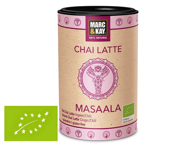 Con: zucchero di canna, latte scremato in polvere, proteine del latte in polvere, estratto di tè nero in polvere, aroma naturale, sale, spezie - senza glutine, tutto biologico