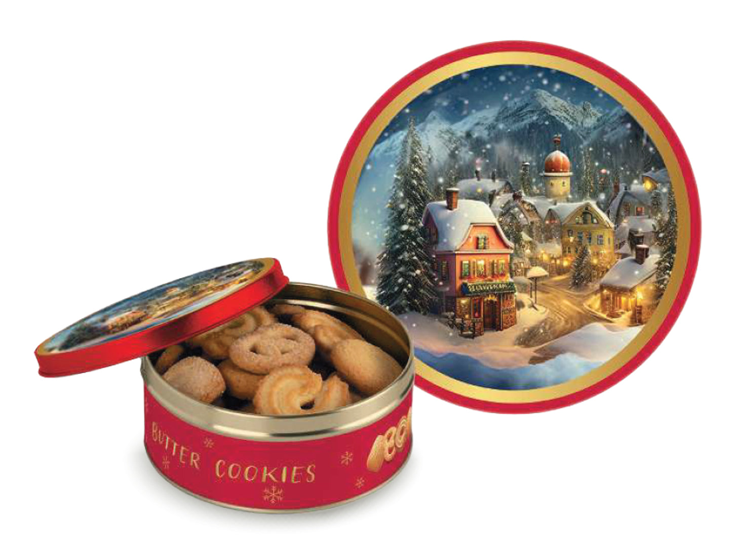Una selezione di diversi biscotti assortiti al burro originali olandesi, confezionati in una graziosa lattina tematica (diametro 14cm e altezza 5cm).