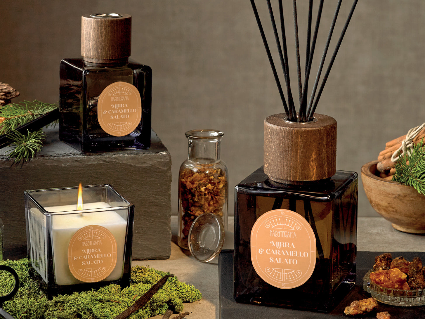 Le fragranze nelle bottiglie di vetro serigrafato, arredano e profumano allo stesso tempo.