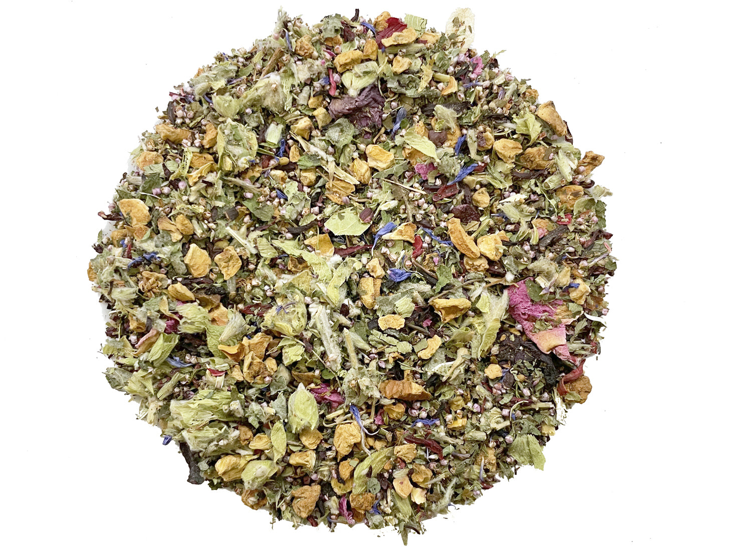 Con:miele, tiglio, menta, tè greco di montagna, ibisco, miele di manuka, verbena, petali di papavero, erica, fiordaliso, foglie di mora. SENZA AROMI