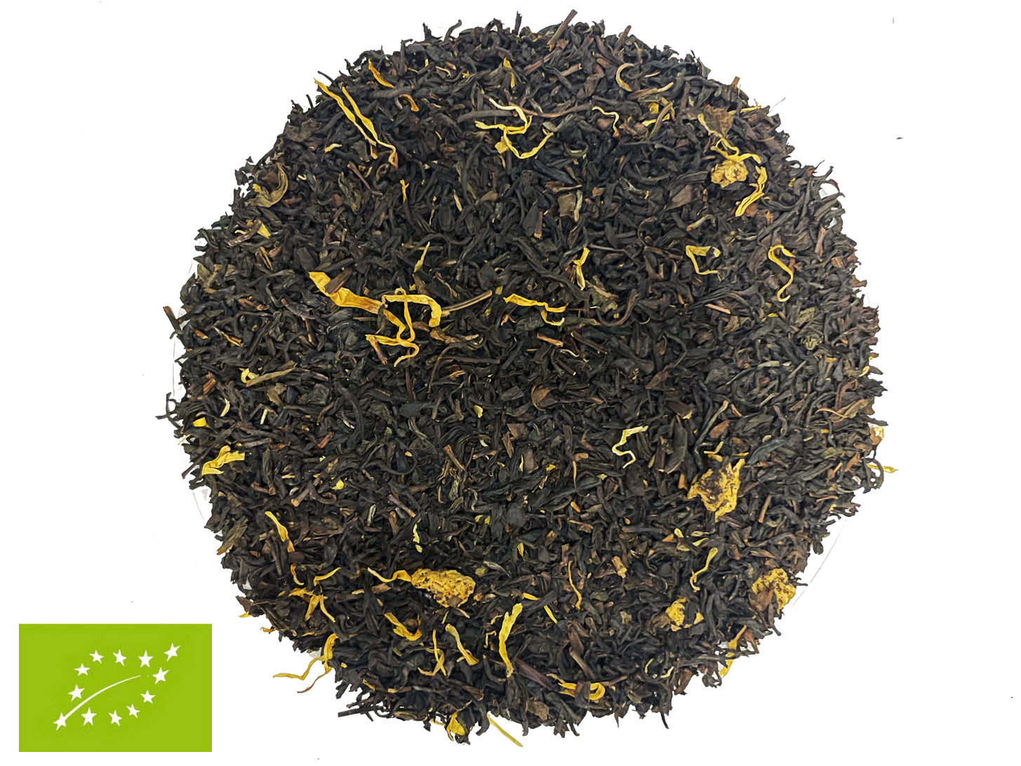 Con: tè nero di Ceylon, pesca liofilizzata, aroma naturale di pesca e mora, petali di calendula.