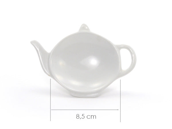Utile fine e grazioso, questo piattino in porcellana a forma di teiera serve da appoggio per i filtri del tè dopo essere stati usati.