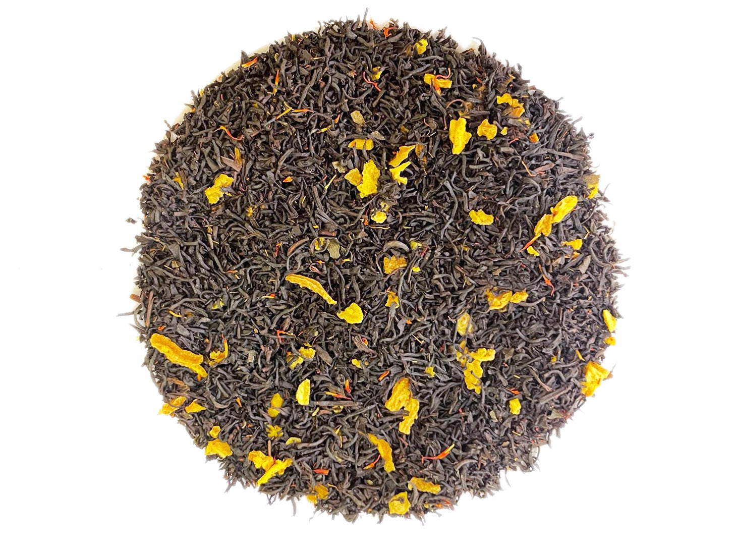 Con: tè nero, buccia di limone, aroma naturale, polpa d’arancia essiccata, cartamo, lemonmyrtle.