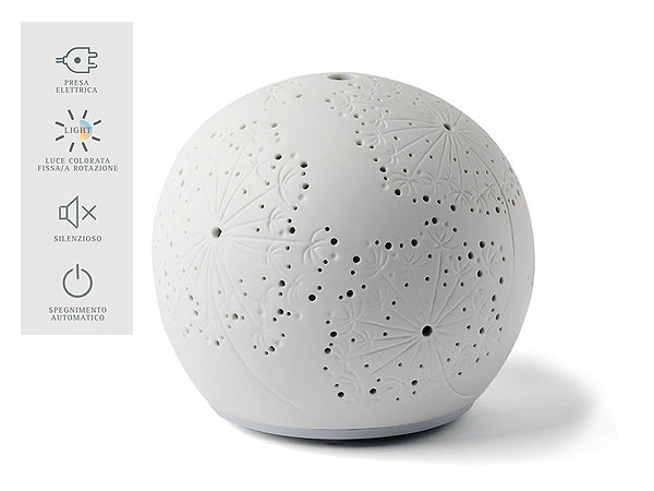 Realizzato in ceramica, Soffio coniuga estetica e funzionalità grazie alla lavorazione fresca e attraente che ben si adatta a qualsiasi ambiente della casa. I fiori della ceramica lavorati a mano, diffondono una delicata luce che può cambiare colore, ideale per l'illuminazione notturna. Soffio crea suggestive atmosfere di benessere migliorando la qualità dell'aria.