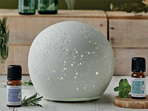- La diffusione mediante ultrasuoni è la modalità perfetta per beneficiare appieno delle proprietà degli oli essenziali, senza dover ricorrere all’uso interno. Le vibrazioni degli ultrasuoni generano infatti un vapore freddo che permette di diffondere nell’ambiente gli oli essenziali in tutta la loro ricchezza aromaterapica: questa modalità di diffusione è l’unica che permette infatti a tutte le molecole che costituiscono un olio essenziale, dalle più leggere a quelle meno volatili, di diffondersi in modo omogeneo ed uniforme nell’ambiente, garantendo così il completo mantenimento delle proprietà degli oli essenziali anche una volta nebulizzati. I diffusori a ultrasuoni sono il sistema ideale per nebulizzare gli oli essenziali poiché, grazie al processo di diffusione a freddo, ne lasciano inalterate le proprietà.