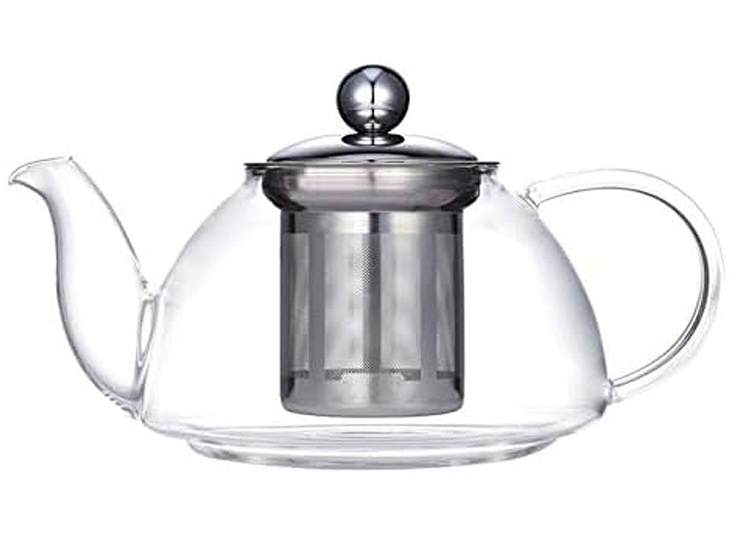 Realizzata in robusto vetro borosilicato resistente alla alte temperature ha coperchio e filtro in acciaio inossidabile.