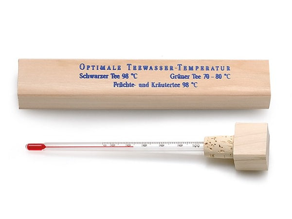 Pratico termometro per conoscere la temperatura dell'acqua con cui andremo a preparare il tè. La cover in legno attutisce gli urti rendendolo più longevo.