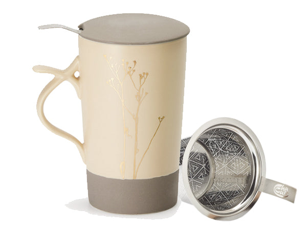 Stupenda tisaniera MUG con coperchio in porcellana, dotata di un filtro in acciaio inox di grande capacità. La doppia parete permette alla tazza di non diventare eccessivamente calda e allo stesso tempo di mantenere a lungo la temperatura del suo contenuto.